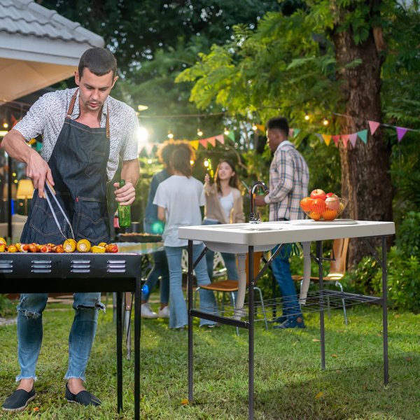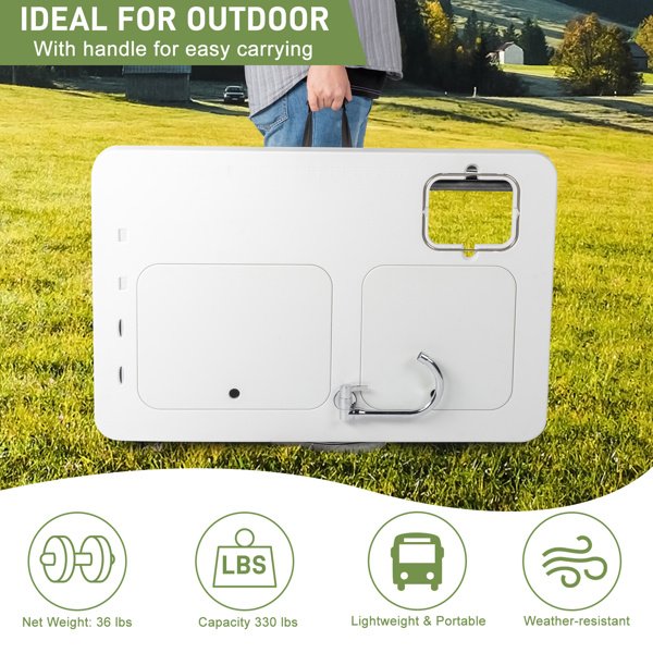 Do you enjoy picnics? If so, this Outdoor Folding Multifunctional Fish Table Picnic Table is highly recommended to you. It can help you with quick and convenient fish killing and cleaning. This table adopting high quality material, which features sturdy and durable. It includes spray gun and faucet, so that it's very convenient for you. Moreover, foldable design makes this table easy to store and convenient to carry. It's good for cutting meals, vegetables, fish, etc. Don't hesitate, just take this practical fish table home!