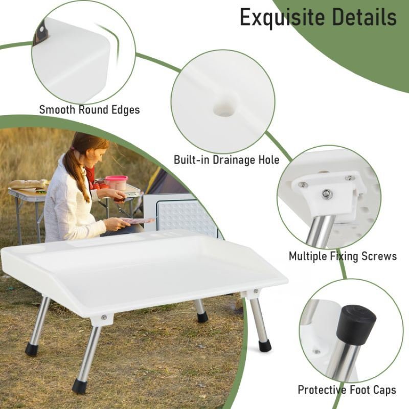 Thanks to the foldable legs, the portable bait table can be folded into a compact size.