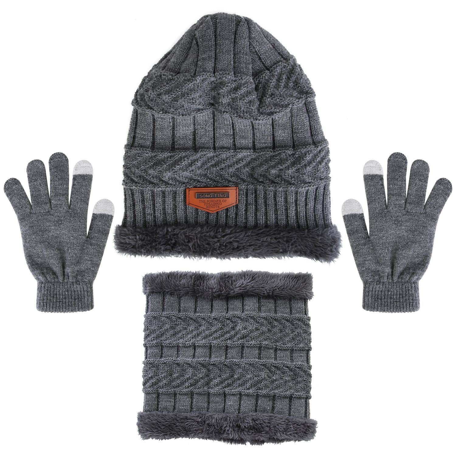 Home > Winter Knitted Hat Scarf Gloves 3Pcs Winter Warm Beanie and Touch Screen Gloves Scarf Set Knit Beanie Skull Cap Neck Warmer Mittens for Men Women