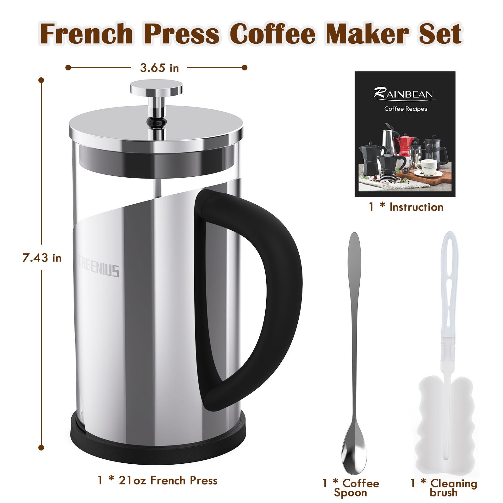 1 * 21oz Coffee Presser1 * Coffee Spoon1 * Clean Brush1 * Coffee Recipes
